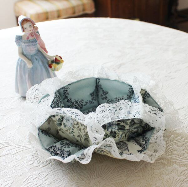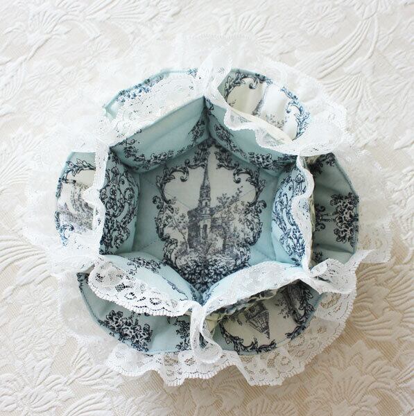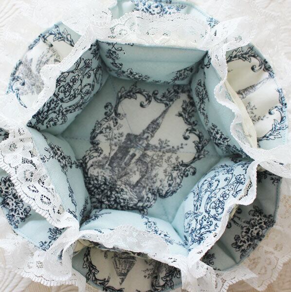 お花の形のレースバスケット トワルドジュイ風柄 ブルーグレイ