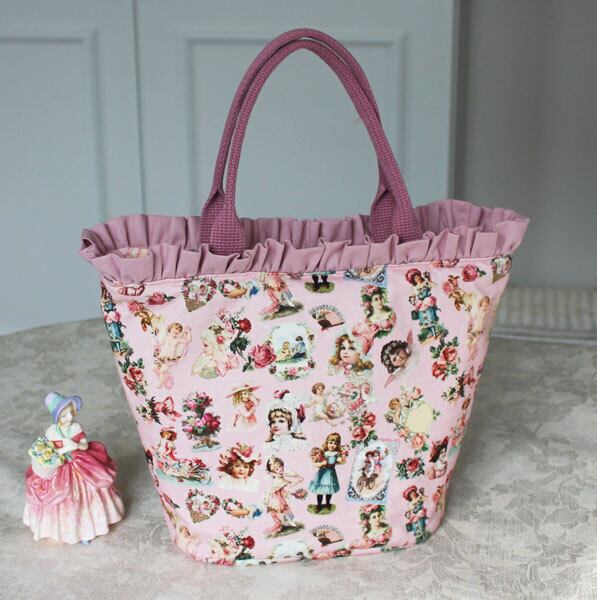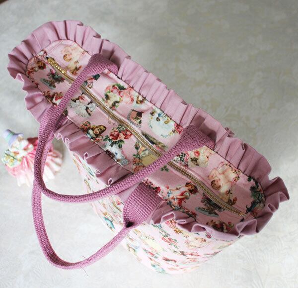 30%off ヴィクトリアン柄&フリルトートバック ピンク