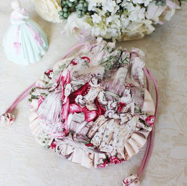 フリルがポイントで可愛い、きんちゃくポーチです。