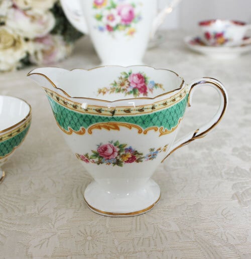 縁飾りのきれいなグリーンにピンクの薔薇が