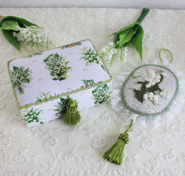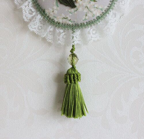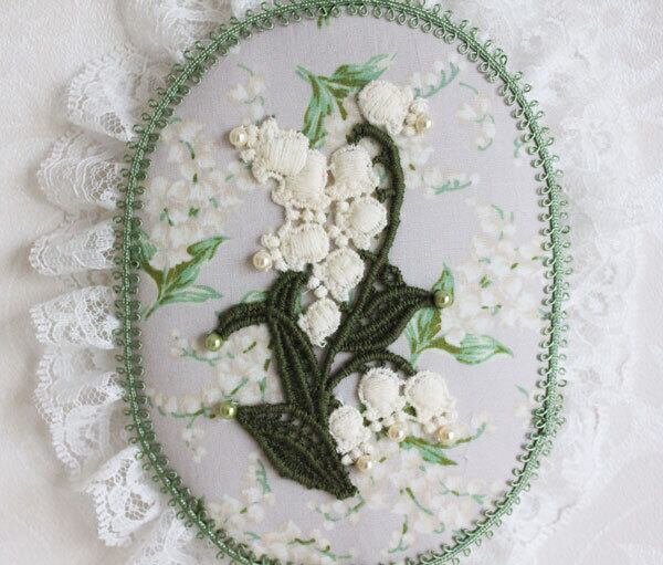 すずらん柄の生地にすずらんのレースモチーフを