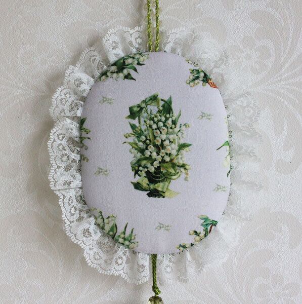 反対側はアンティーク風のすずらん柄の生地で