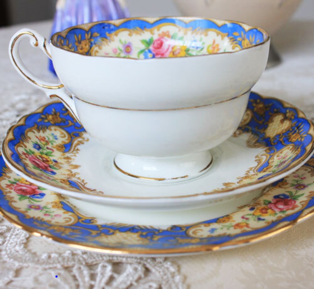 ブルーのロココな柄が美しいトリオです。